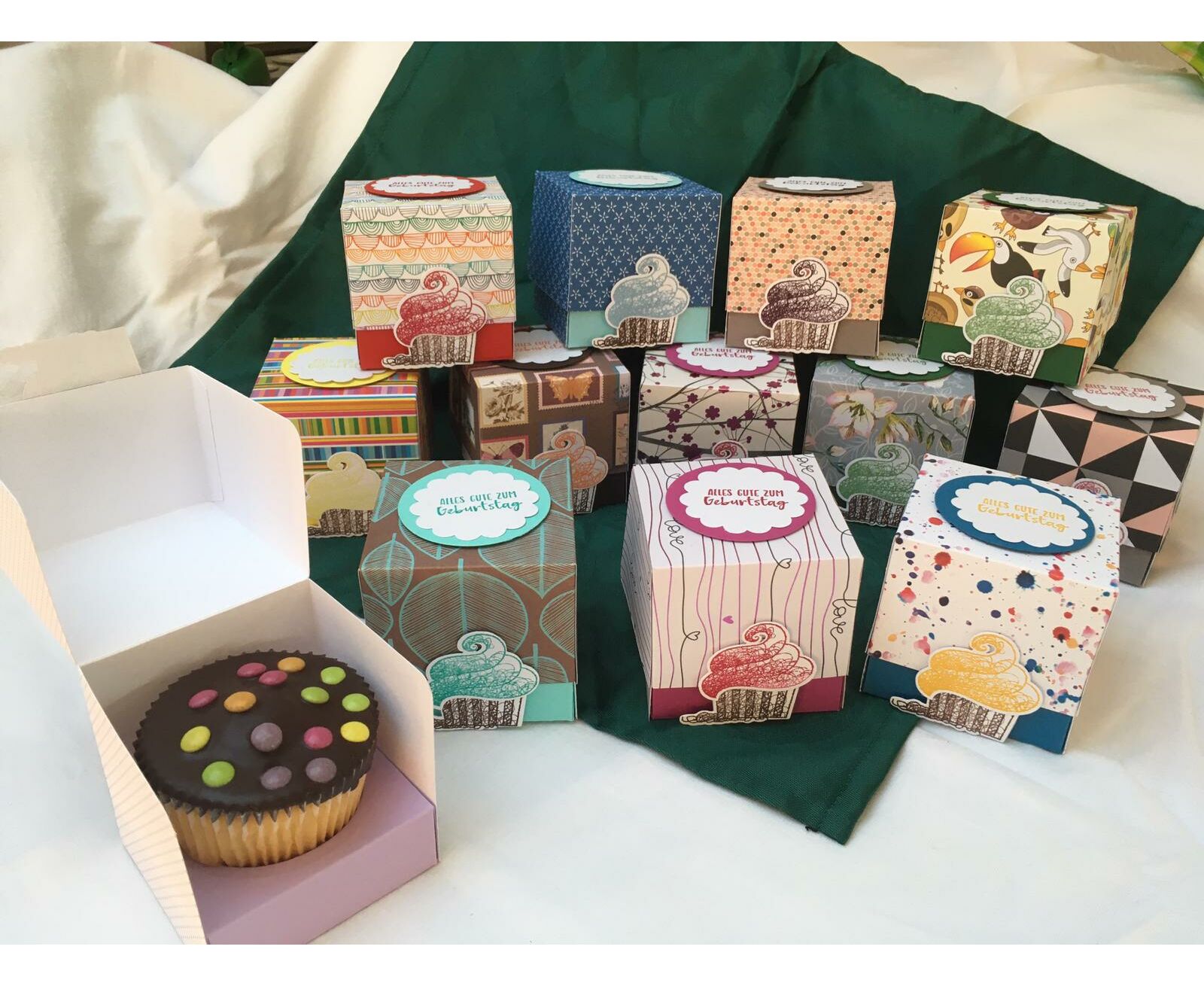 Klappbox zum Geburtstag. Passend für einen Muffin. Muffin nicht enthalten. Diverse Farben.