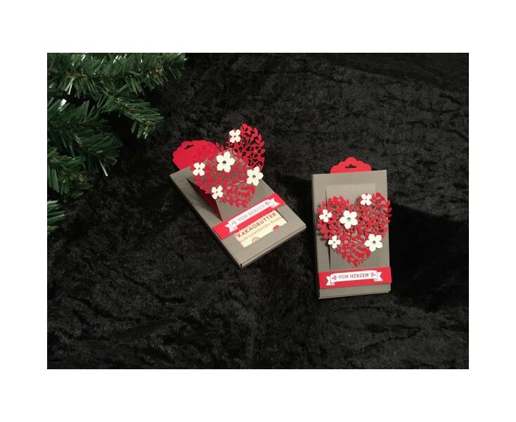 Durch Zug an der Lasche fährt das Herz an der Verpackung nach hinten und der enthaltene Badezusatz wird sichtbar; Farbe: grau