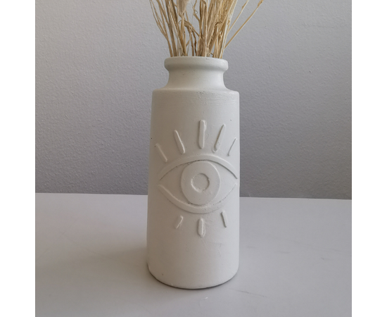 Upgecycelte Vase mit Auge / Farbe Cremeweiß (Deko kann separat erworben werden)