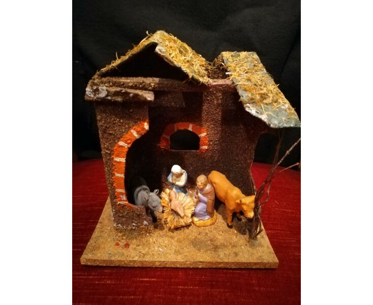 Kleine Weihnachtsgrippe, Holz und Pappe, Höhe 20 cm