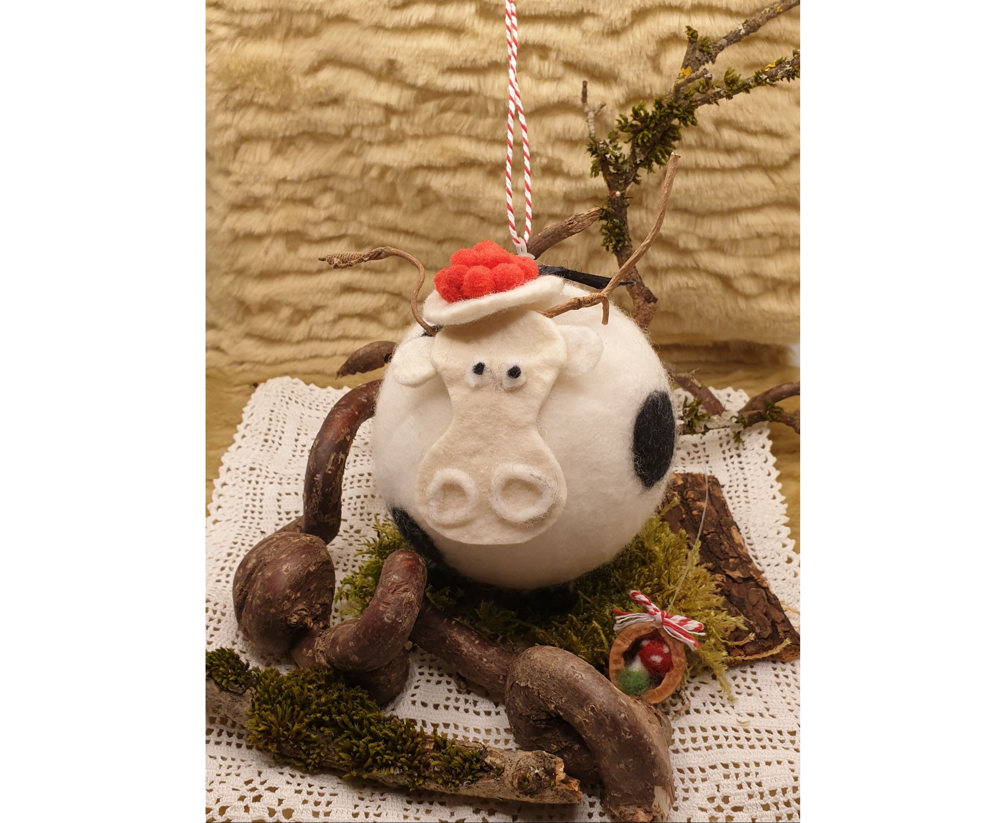gefilzte Schwarzwaldkuh mit Bollenhut zum Hängen oder hinstellen