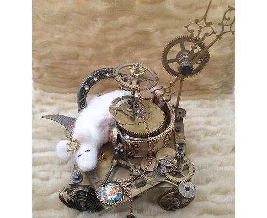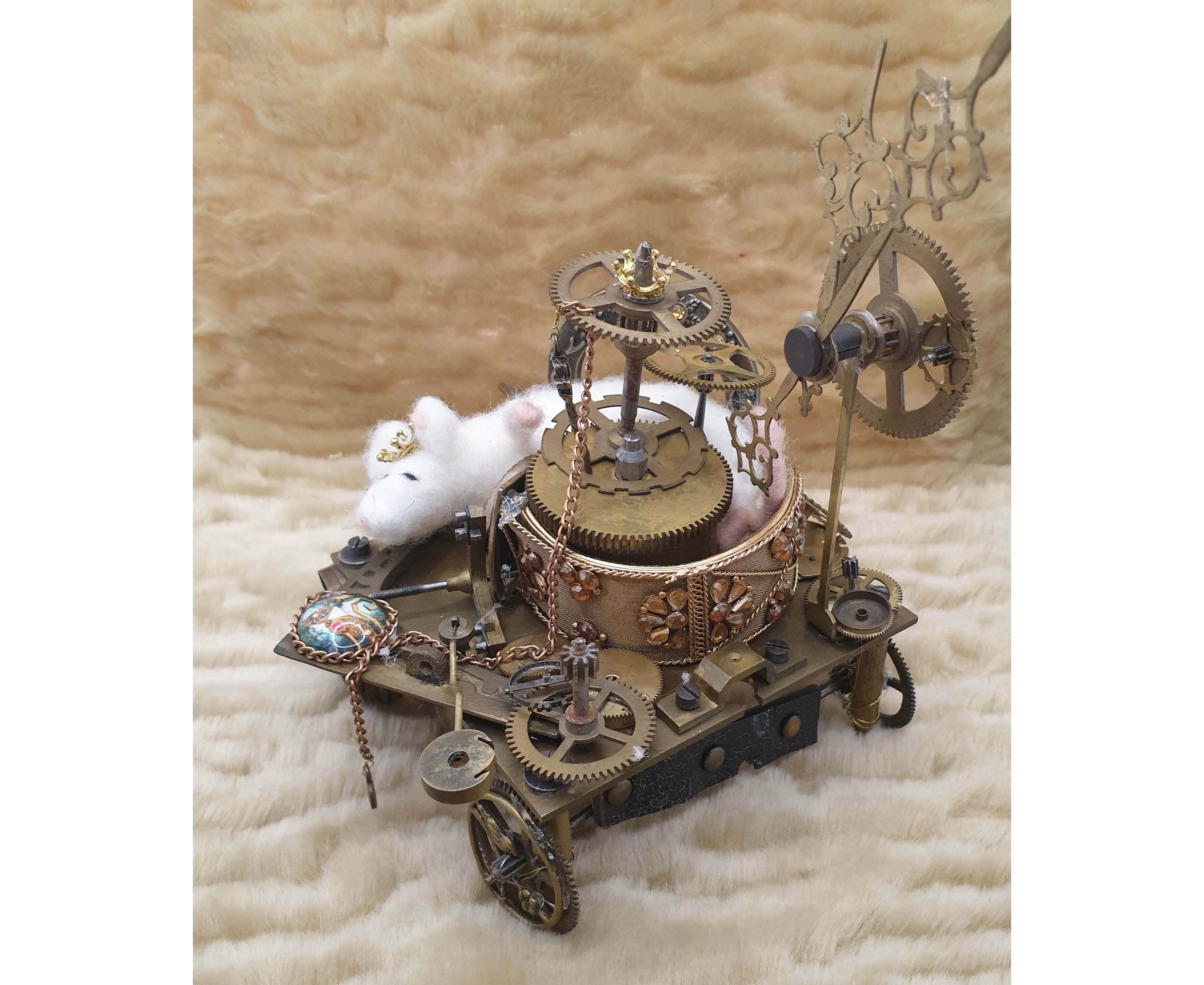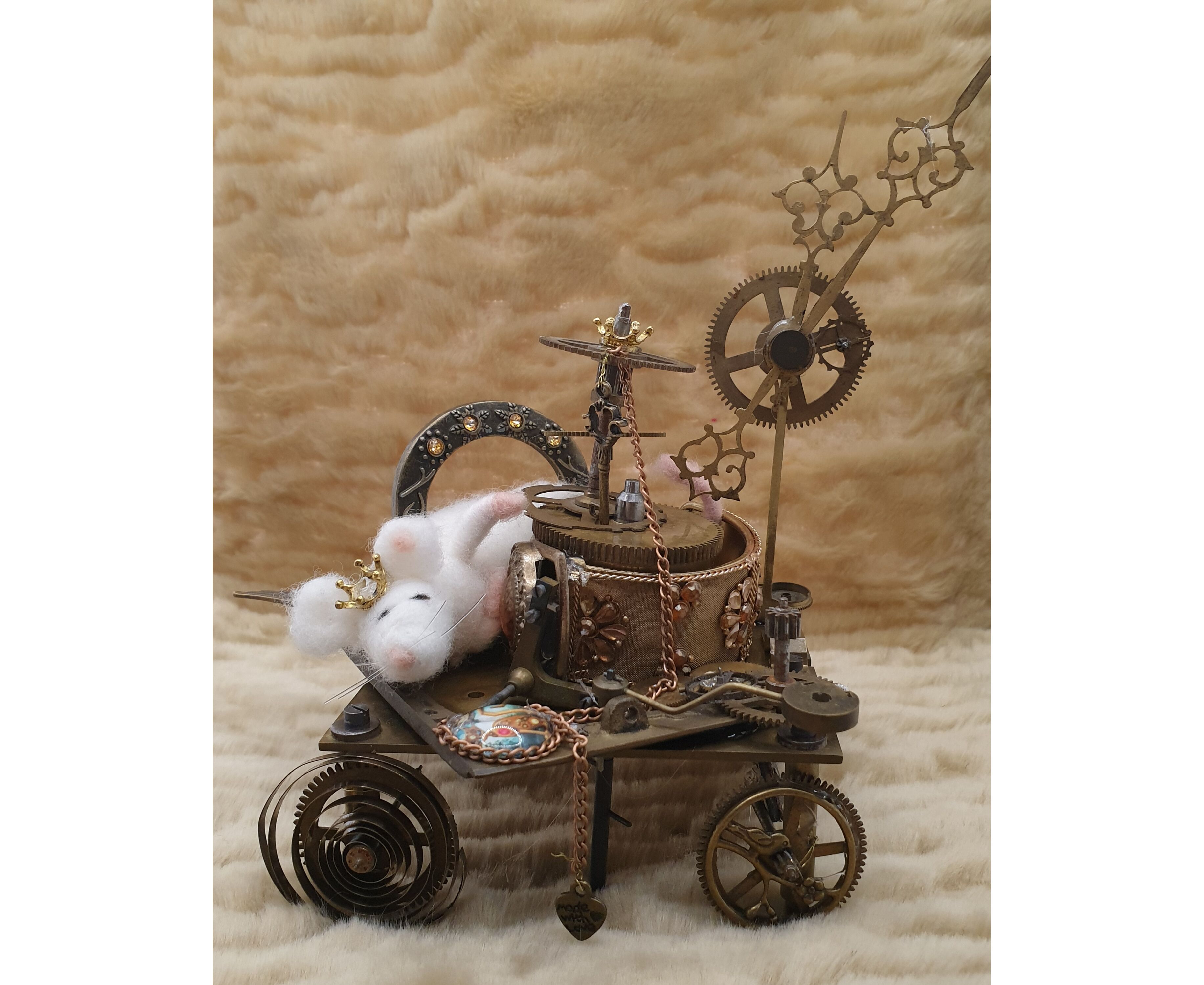 Steampunk Uhrwerk mit gefilzter Maus Kunsthandwerk Zeit