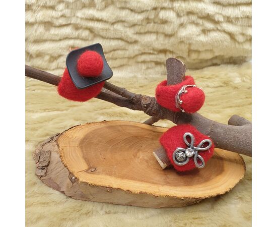 gefilzte Fingerringe in den Farben rot,schwarz,lindgrün und grau