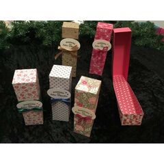 befüllt mit Streichhölzern, Kerze und kleinen Kuchen, Die Anleitung dafür steht im Inneren im Deckel; Farbe: blau,grün, altrosa, orange, rot, pink, türkis, hellgrün