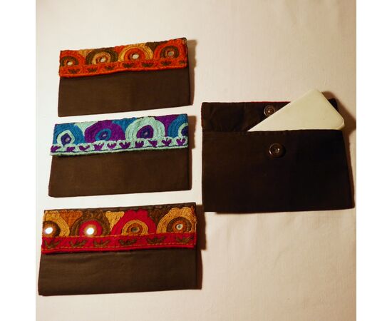 Täschchen (21 cm / 11 cm) mit Druckknopf; handbestickt mit traditioneller Baluchi/Sindhi Spiegelstickerei; z.B. für Smartphones / 4 Stück verfügbar