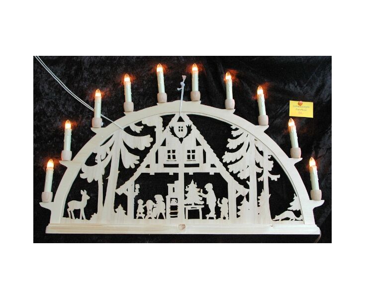 Die berühmten Schwibbögen, selbst gefertigt.Mit elektrischen Kerzen sind sie nicht nur sicher sondern auch ein echter Hingucker –