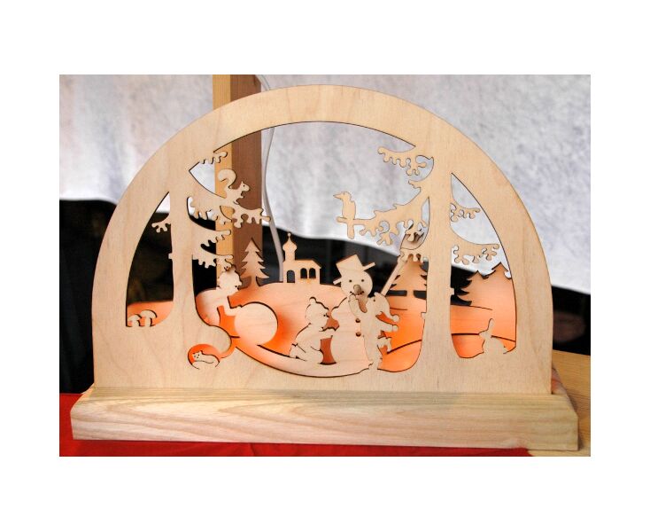 Eine Schwibbogen, der auch in kleineren Räumen sehr schön zur Geltung kommt!Durch die gestaffelte Beleuchtung und die verschiedenen Ebenen ensteht ein wunderschöner 3-D-Effekt.