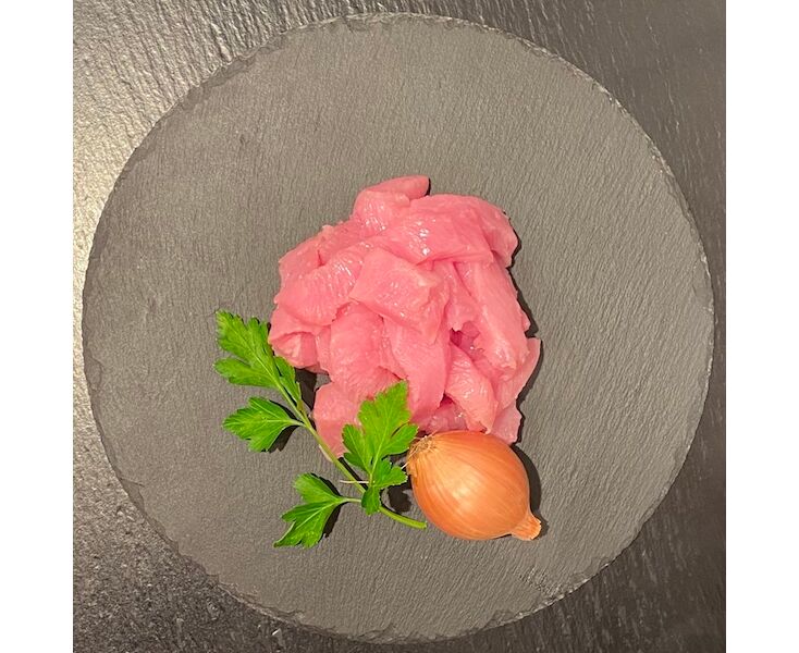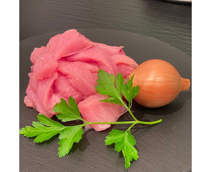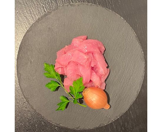 Leckeres, saftiges Geschnetzeltes von unserer Hofpute. Einfach in der Pfanne mit etwas Öl anbraten, Garzeit ca. 4 Minuten und abschmecken.