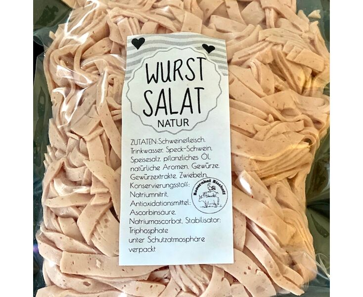 Fein geschnittener Wurstsalat zum anmachen.