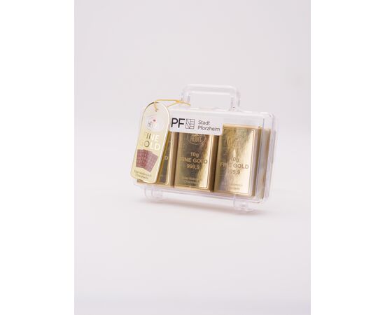 Kostbare Geschenkidee gefällig? Unser Gold-Koffer ist mit 12 einzeln verpackten Mini-Tafeln in Goldbarren-Optik aus zartschmelzender Edel-Vollmilchschokolade gefüllt. Das Präsent ist eine köstliche Anlage, die sich nach dem Naschen auch als Spardose weiter verwenden lässt.