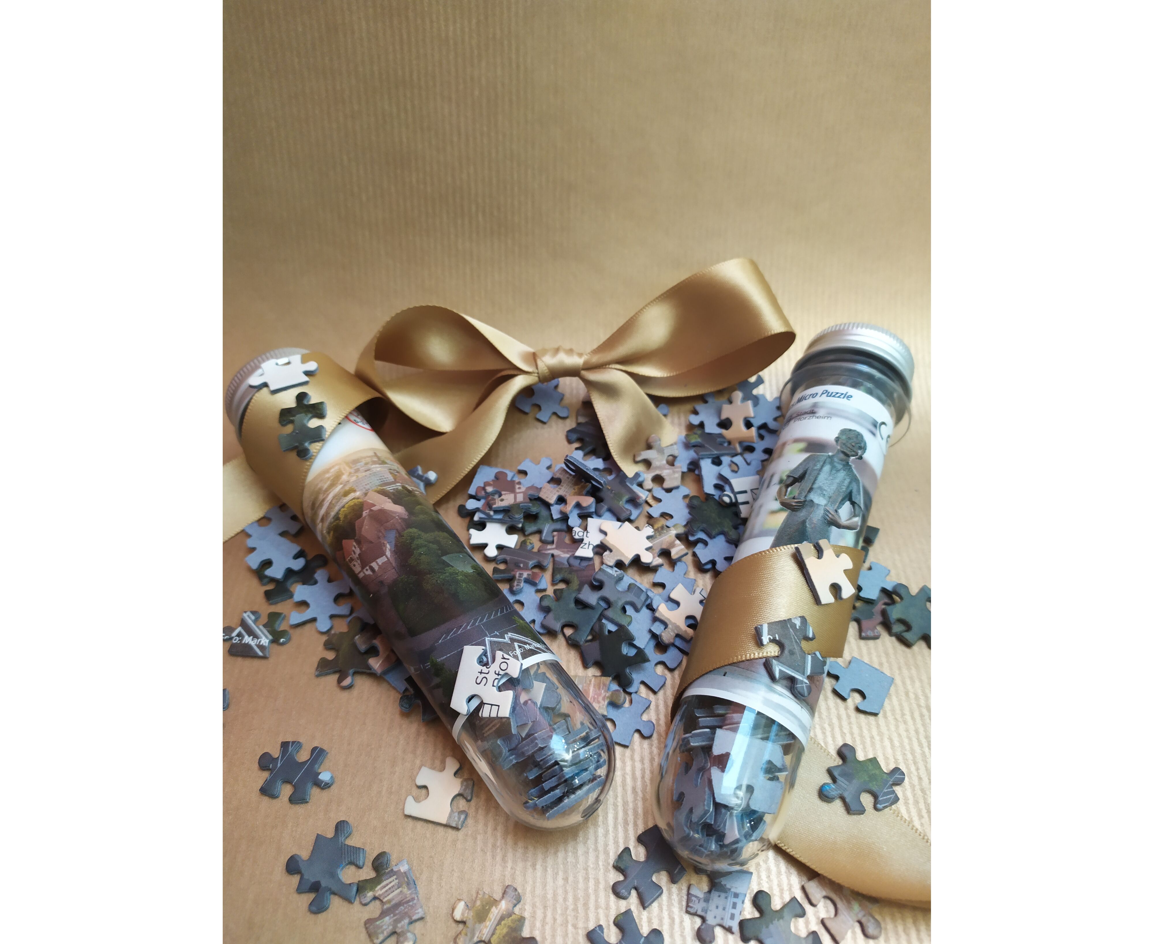 Das Puzzle aus dem Reagenzglas - die kleine Geschenkidee aus Pforzheim, die in jede Tasche passt! Ob als Mitbringsel und Souvenir oder für einen netten Spieleabend - puzzle Dir dein Pforzheim mit diesem tollen Mitbringsel zusammen. Ein Spaß für Groß und Klein.